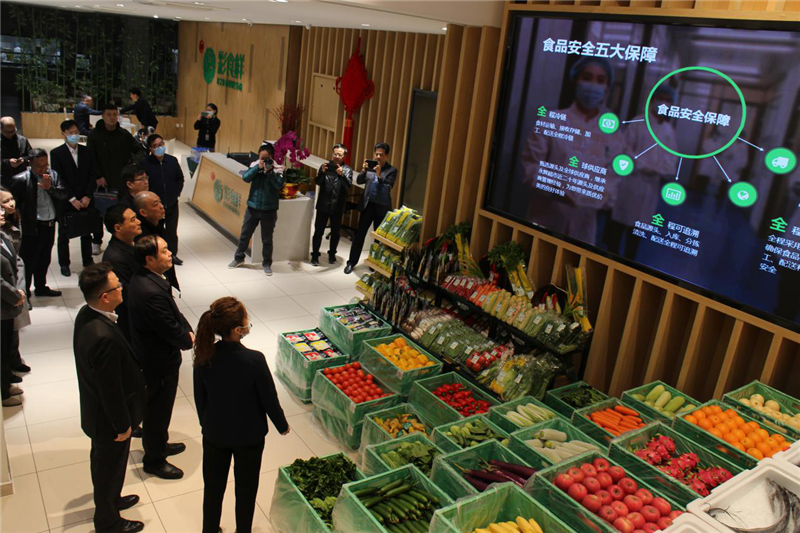 在彩食鮮精包裝食材及B端客戶供應(yīng)食材的展示區(qū)域,調(diào)研團先是詳細詢問了生鮮食材的進貨批次、產(chǎn)地、供應(yīng)商、檢測標準、檢測結(jié)果、檢測項目等詳細信息,隨后在工作人員的指引下親自體驗了食品安全掃碼溯源服務(wù),并給予了高度評價。