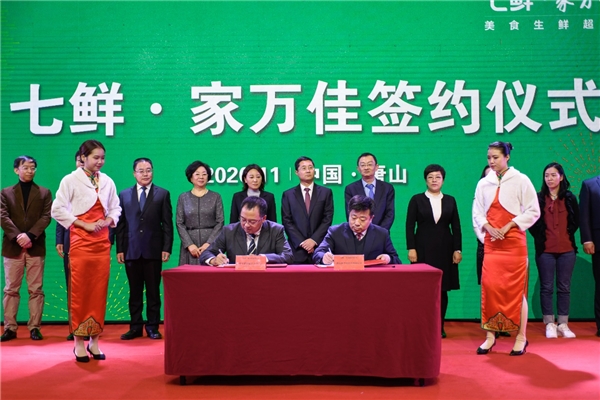 11月13日上午,京東旗下美食生鮮超市七鮮和唐山家萬佳超市在唐山市豐南區簽署戰略合作協議。
