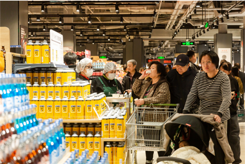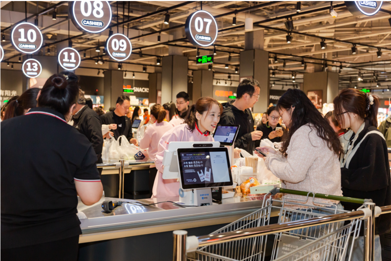 昨天,永輝超市“學習胖東來”自主調(diào)改的北京首家門店——石景山喜隆多店恢復營業(yè)。首日支付客流約1.4萬人次,超5萬人進入超市,單日銷售總額達到170萬元,超過調(diào)改前日均銷售的6倍。
